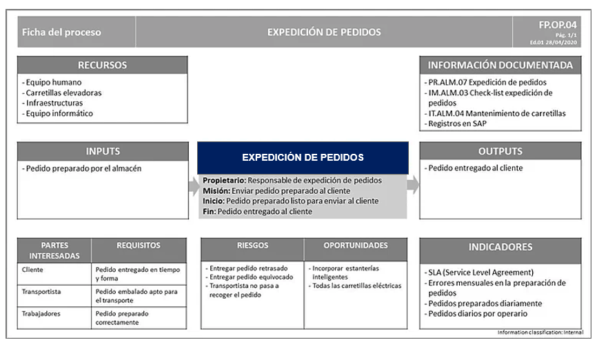 Tomando en cuenta la forma y estructura de la caja ICOM observemos a continuación un ejemplo de ficha de proceso hallado en internet.